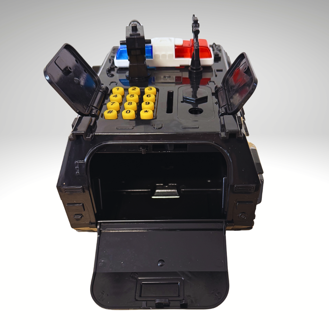 Pretvorite čuvanje novca u pravu avanturu! Ovaj atraktivni policijski džip sef nije samo igračka – već i pametna kasica koja će deci pomoći da nauče da štede na zabavan način. Sa realističnim dizajnom i zanimljivim funkcijama, idealan je za svakodnevnu igru i čuvanje novčića i novčanica.